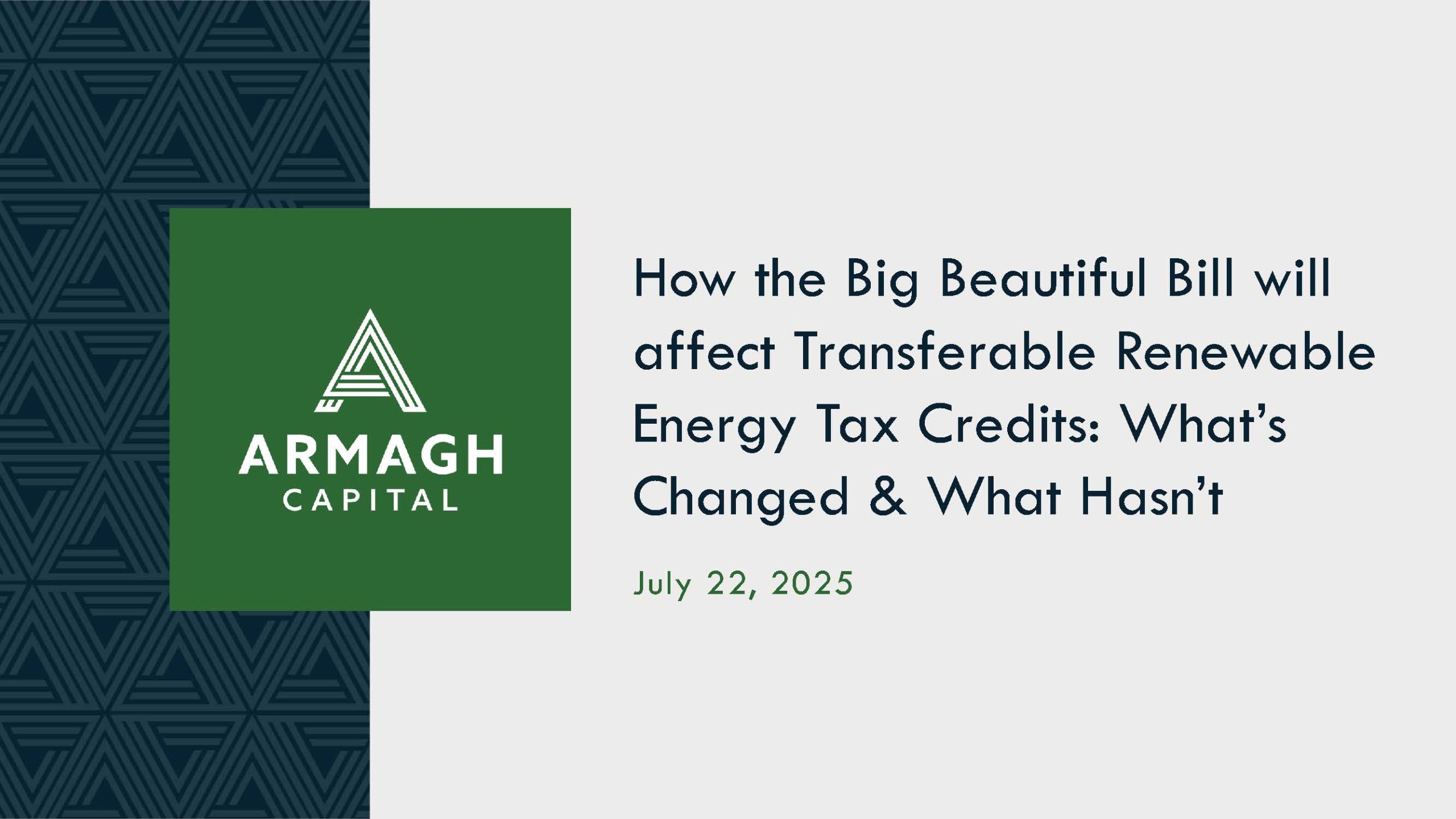 John Carson: [00:00:00] received a number of questions in regard to the federal tax credits, what's available, but more than anything, how does the Big Beautiful Bill, affect the things? So what we wanna do is just walk through from a seller standpoint, a buyer standpoint. What's changed, what's not, and a lot of a number of groups are looking at other portions of the bill . What we're looking at is how does this affect really buyers and sellers, more specifically buyers and when does it affect them?